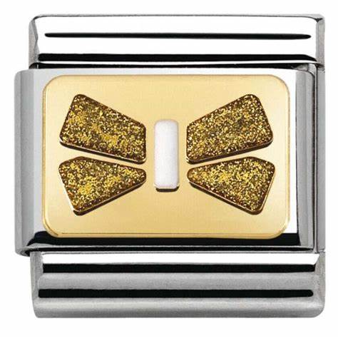 Nomination Composable Classic size charm in stainless steel with 18ct yellow gold gold glitter & white enamel Bow symbol.