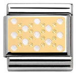 Nomination Composable Classic size charm in stainless steel with 18ct yellow gold white enamel Lace Collection Dots symbol.