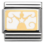 Nomination Composable Classic size charm in stainless steel with 18ct yellow gold white enamel filigree Christmas Angel symbol.