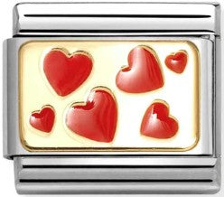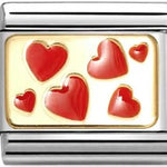 Composable Classic size charm in stainless steel with 18ct yellow gold red enamel Hearts symbol.