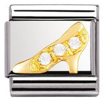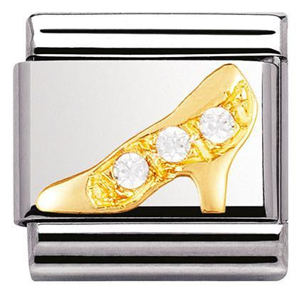 Composable Classic size charm in stainless steel with 18ct yellow gold white cubic zirconia High Heel Shoe symbol.