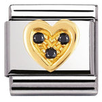 Nomination Classic Gold CZ Black Heart Charm SALE