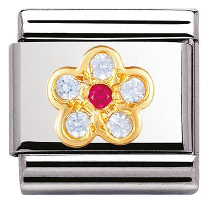 Nomination Classic Gold CZ Light Blue Red Flower Charm SALE