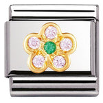Nomination Classic Gold CZ Pink Green Flower Charm SALE