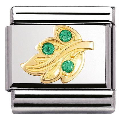 Nomination Classic Gold CZ Green Leaf Charm SALE