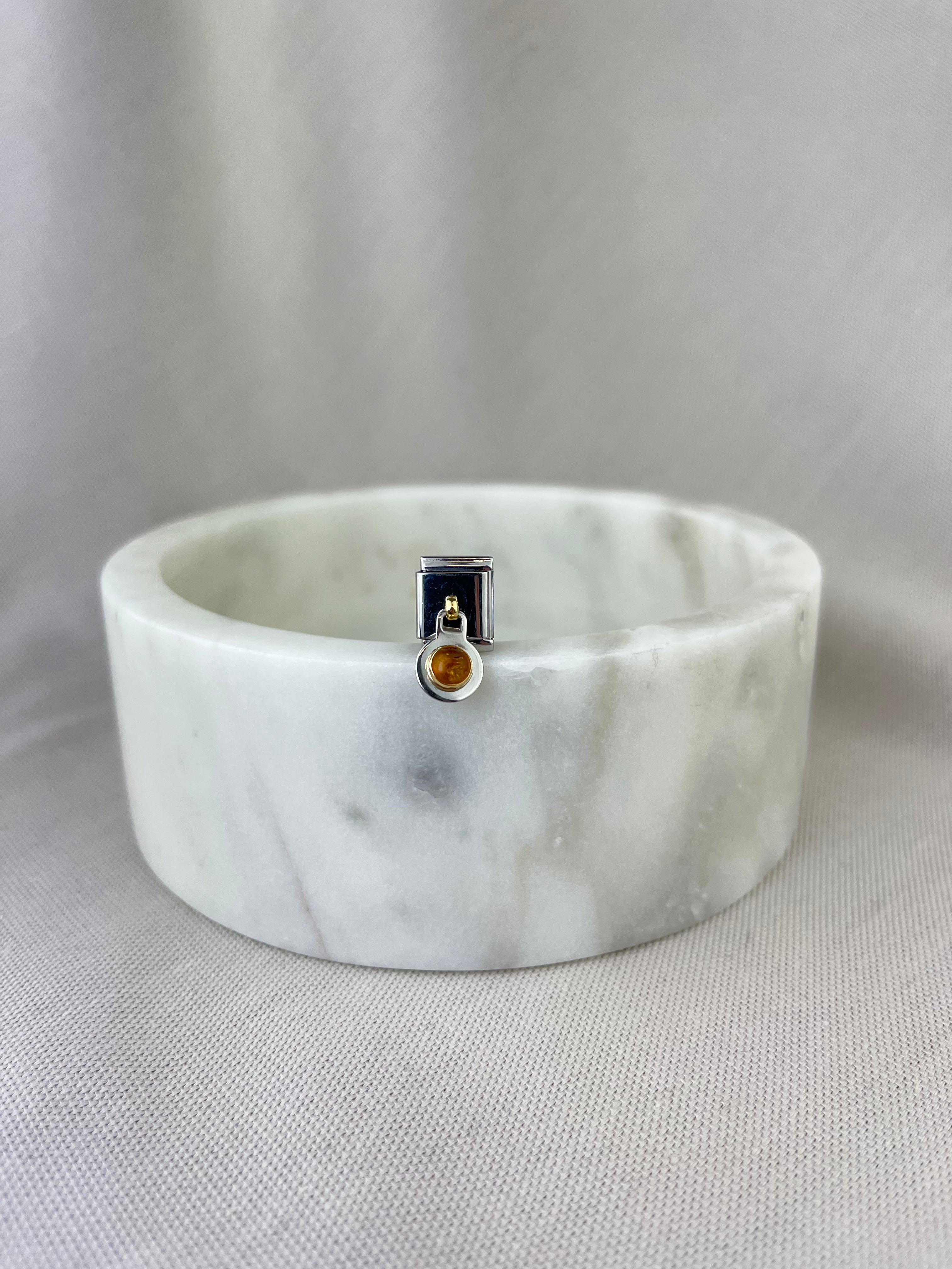 Composable Big size charm in stainless steel with 18ct yellow gold double-sided Amber precious stone. Amber is a natural material, so the individual piece used in your charm may differ slightly from the image shown.