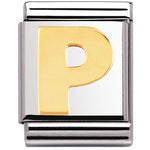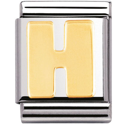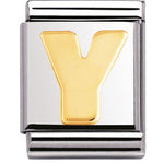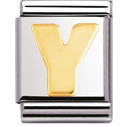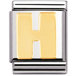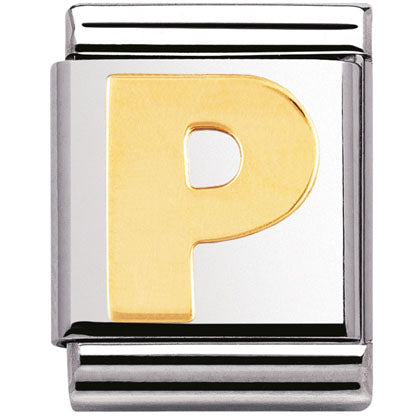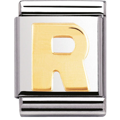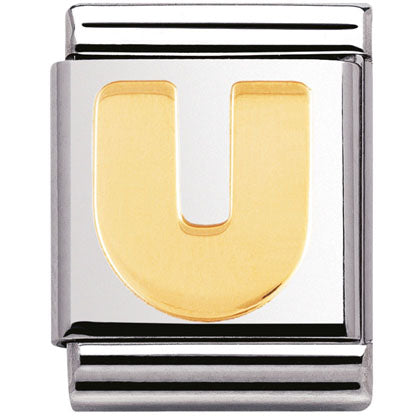 Composable Big size charm in stainless steel with 18ct yellow gold Initial symbol.