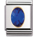 Composable Big size charm in stainless steel with 18ct yellow gold Oval Blue Cubic Zirconia.