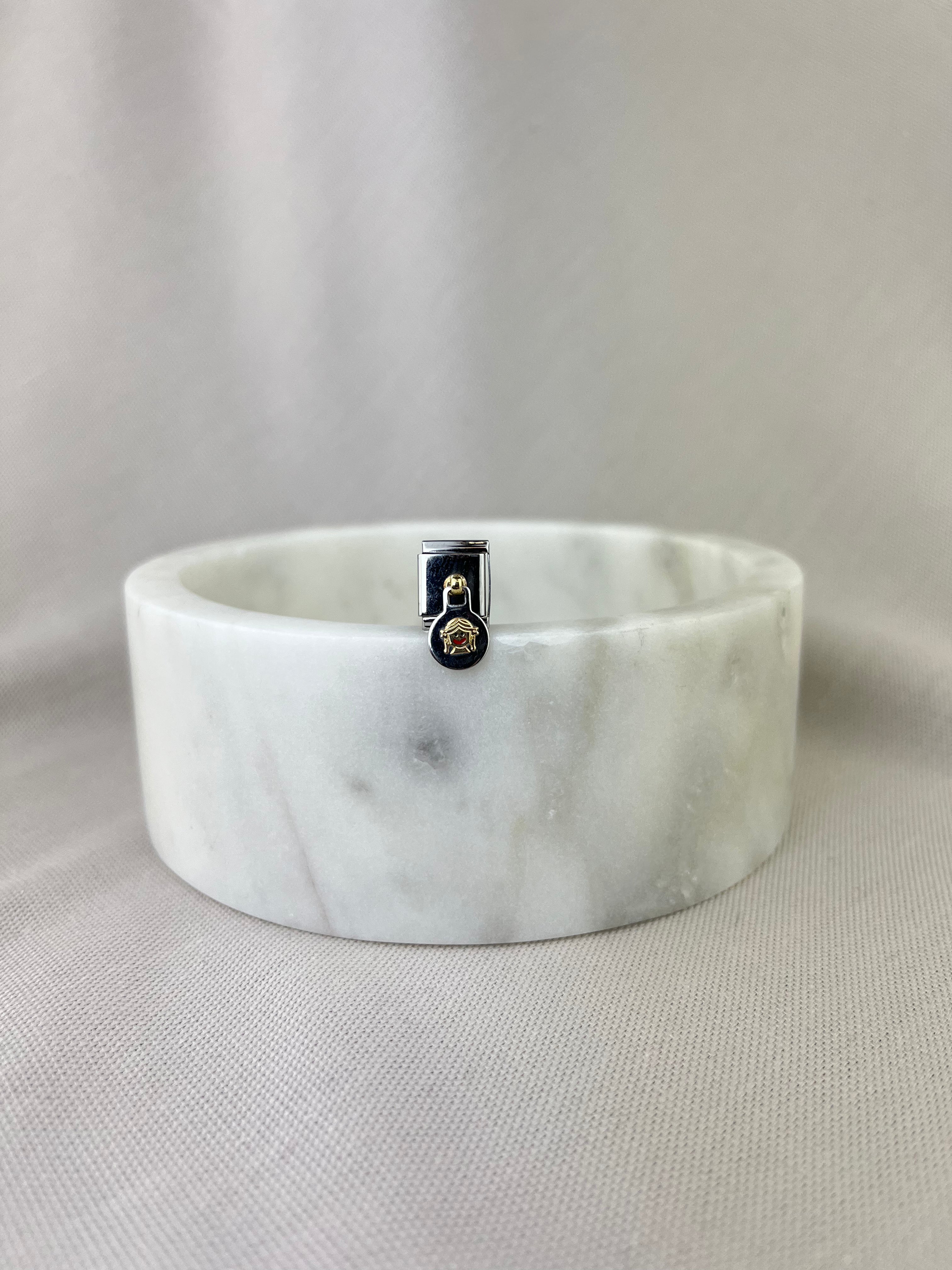 Composable Big size charm in stainless steel with 18ct yellow gold double-sided enamel Little Girl symbol.