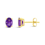 9ct Yellow Gold Amethyst Oval Stud Earrings