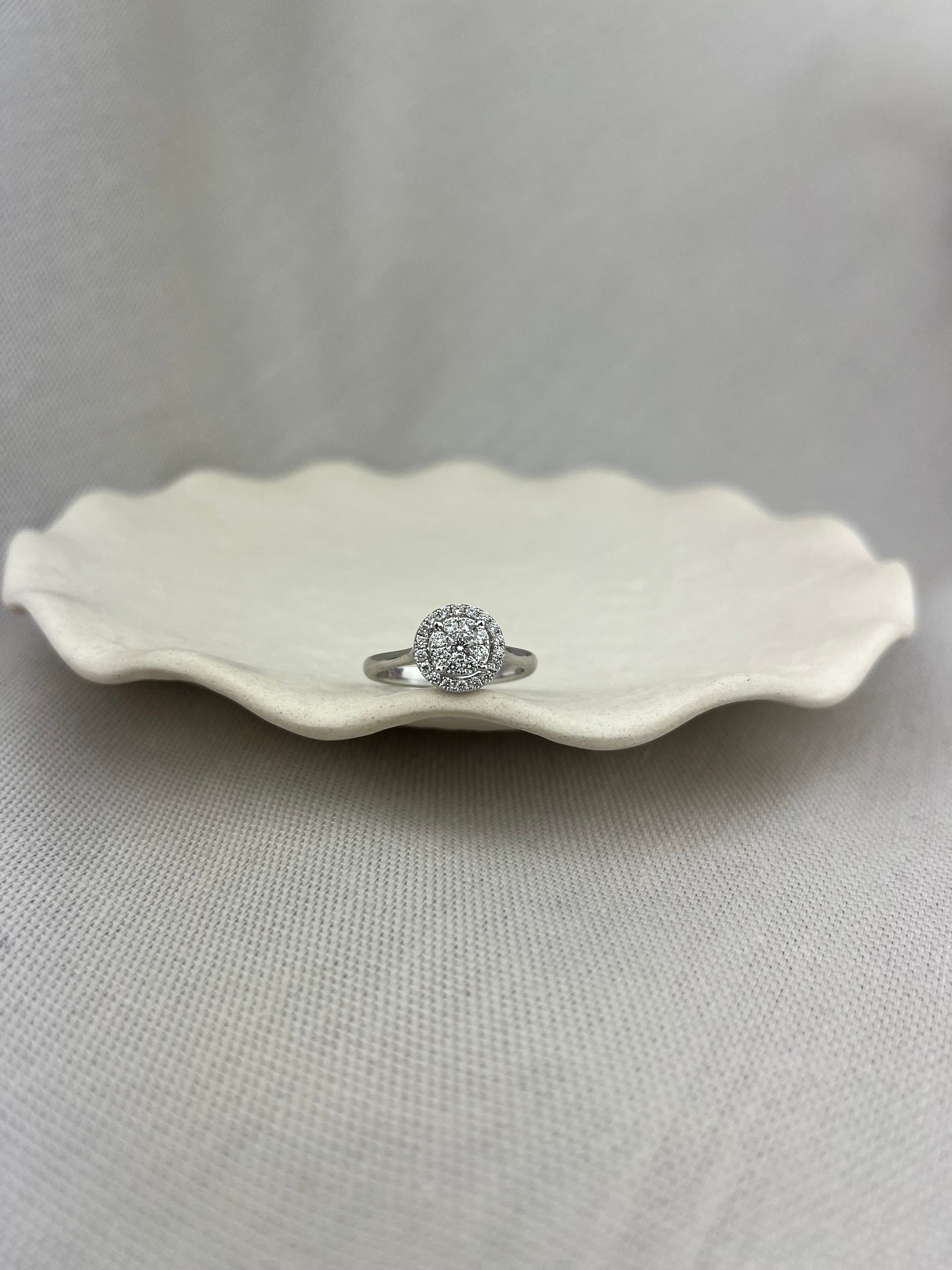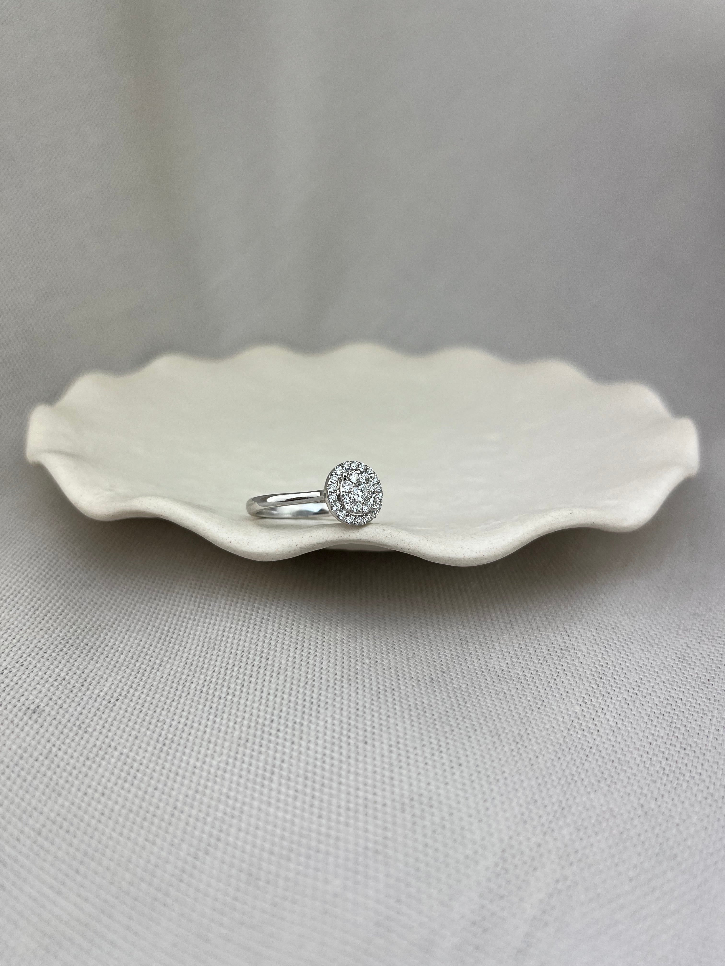 18ct White Gold Diamond Halo Illusion Ring 0.38ct
