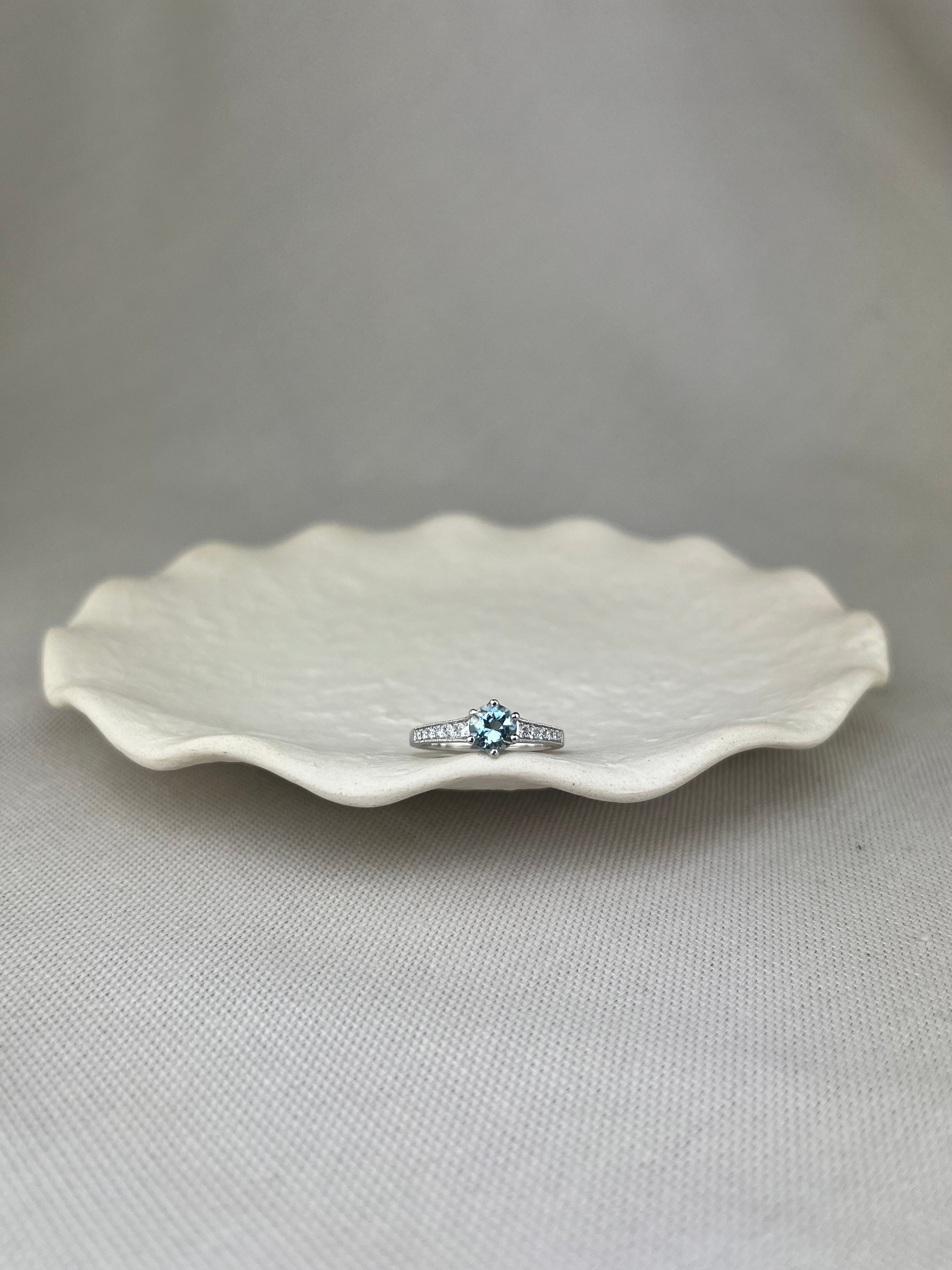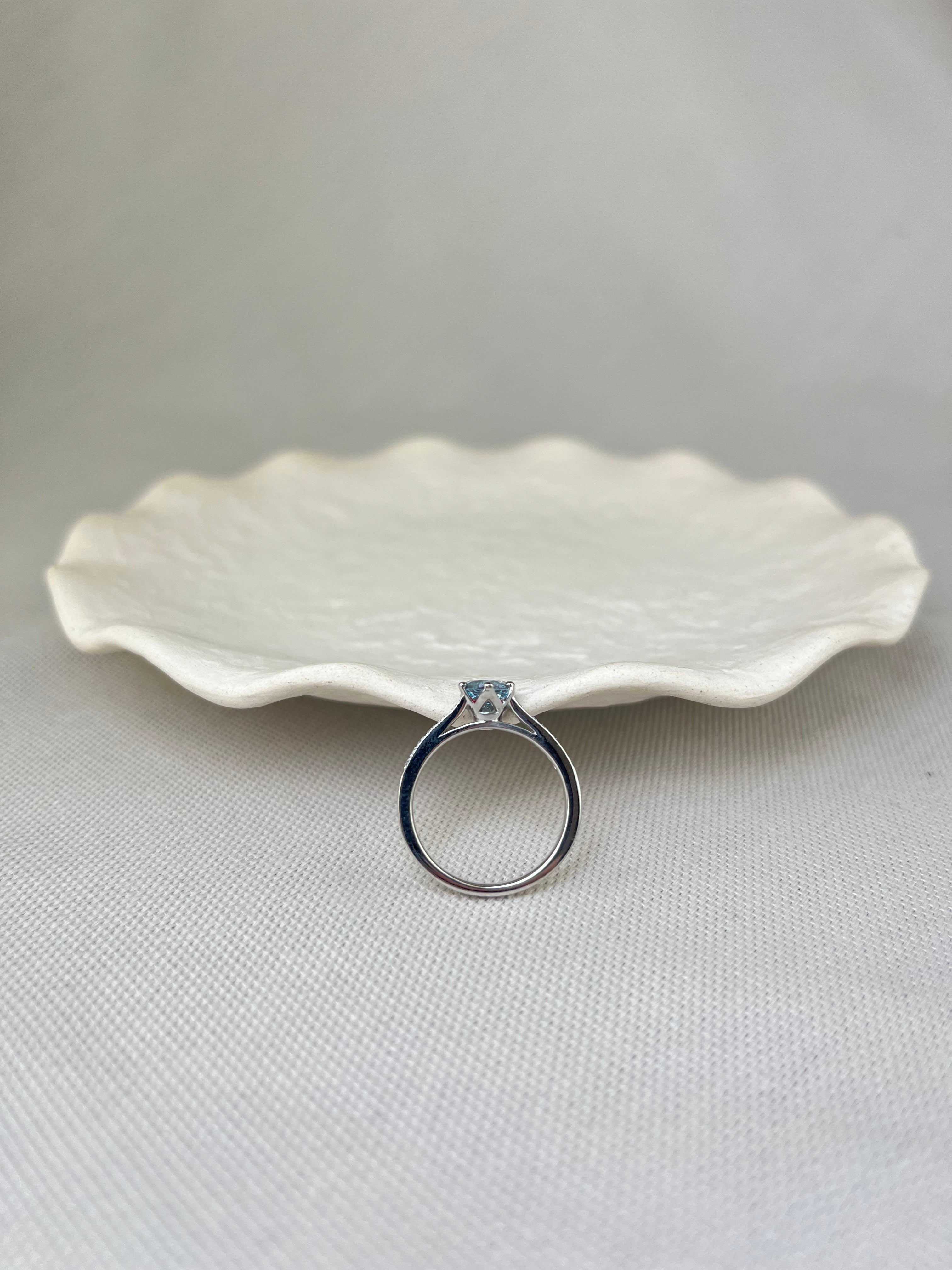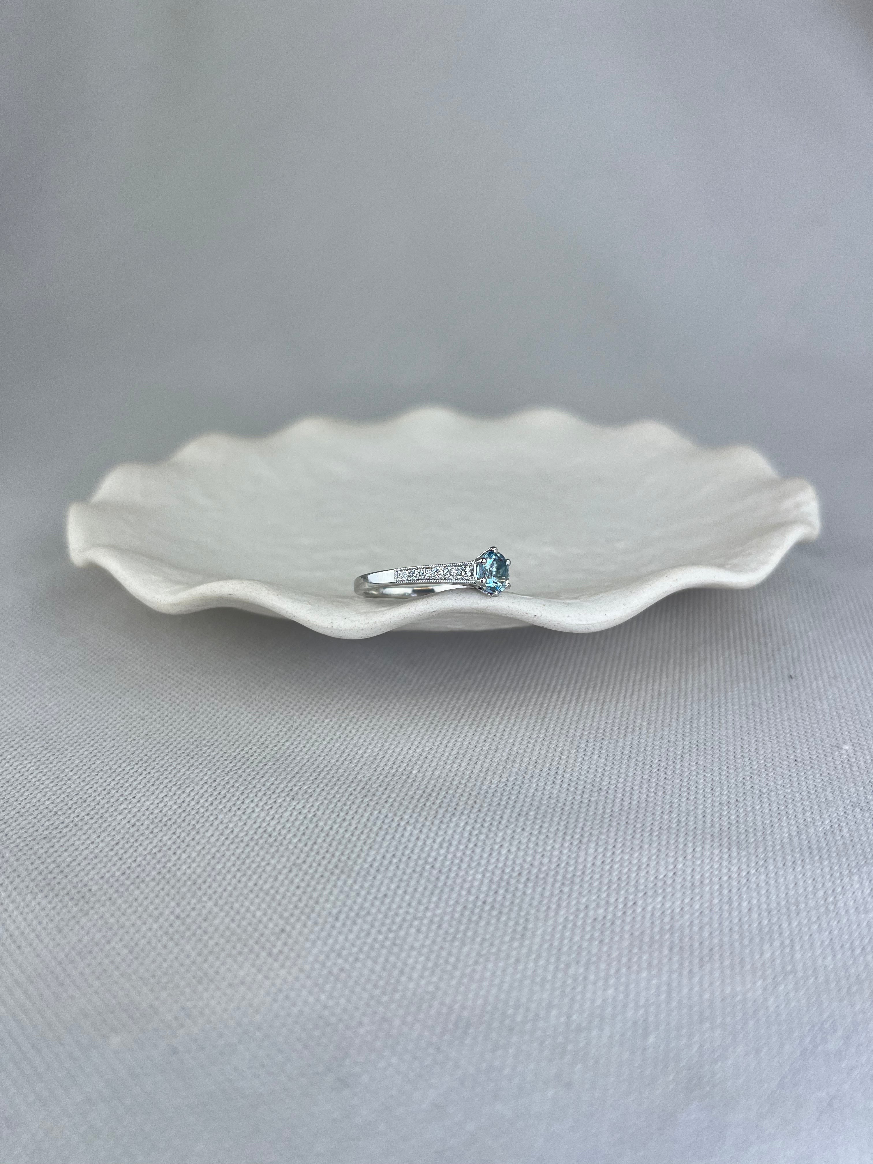 18ct White Gold Aquamarine Solitaire Vintage Sparkle Shoulder Ring