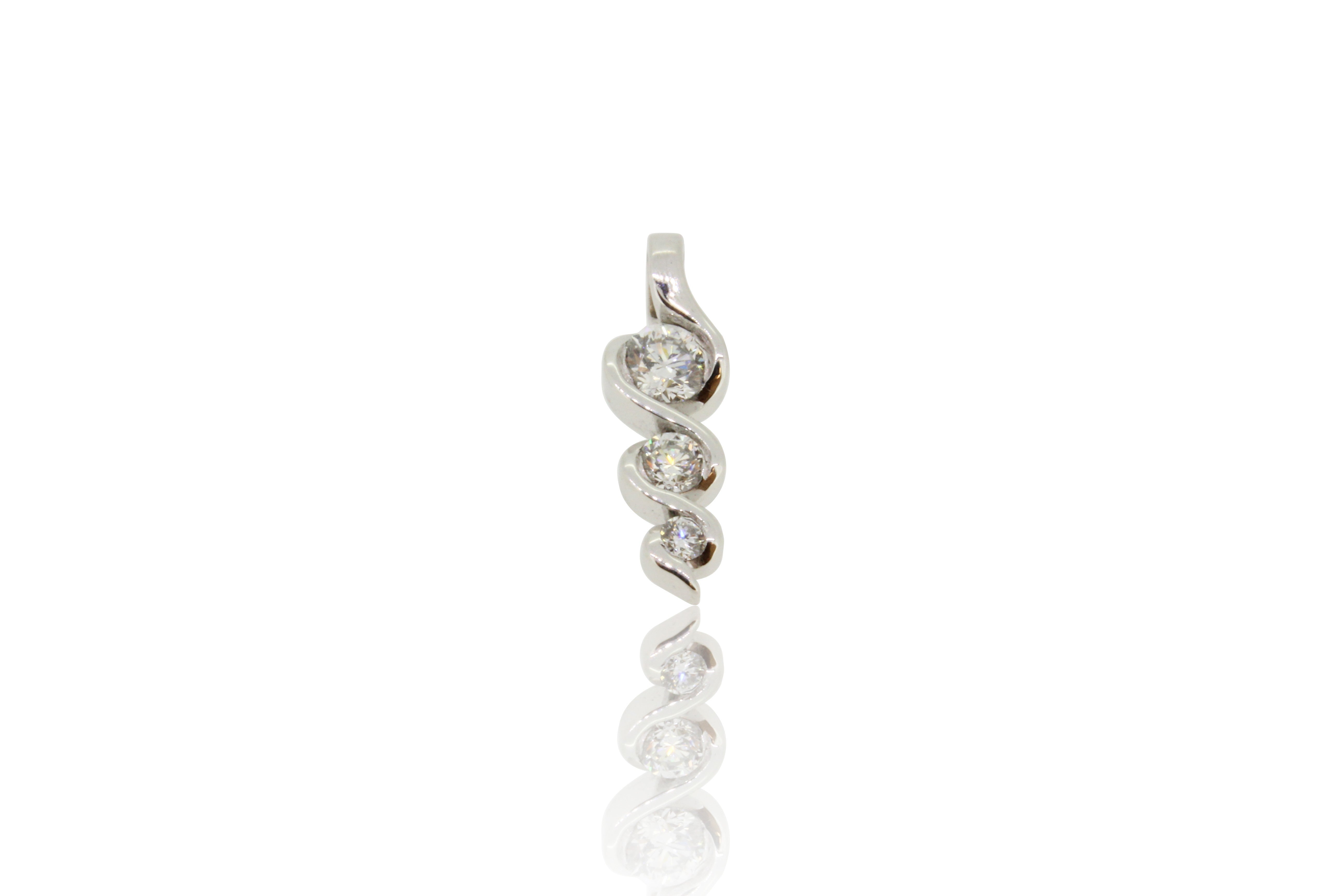 Made from 18ct white gold, this tactile twisting pendant mount contains three diamonds which are graduated in size.