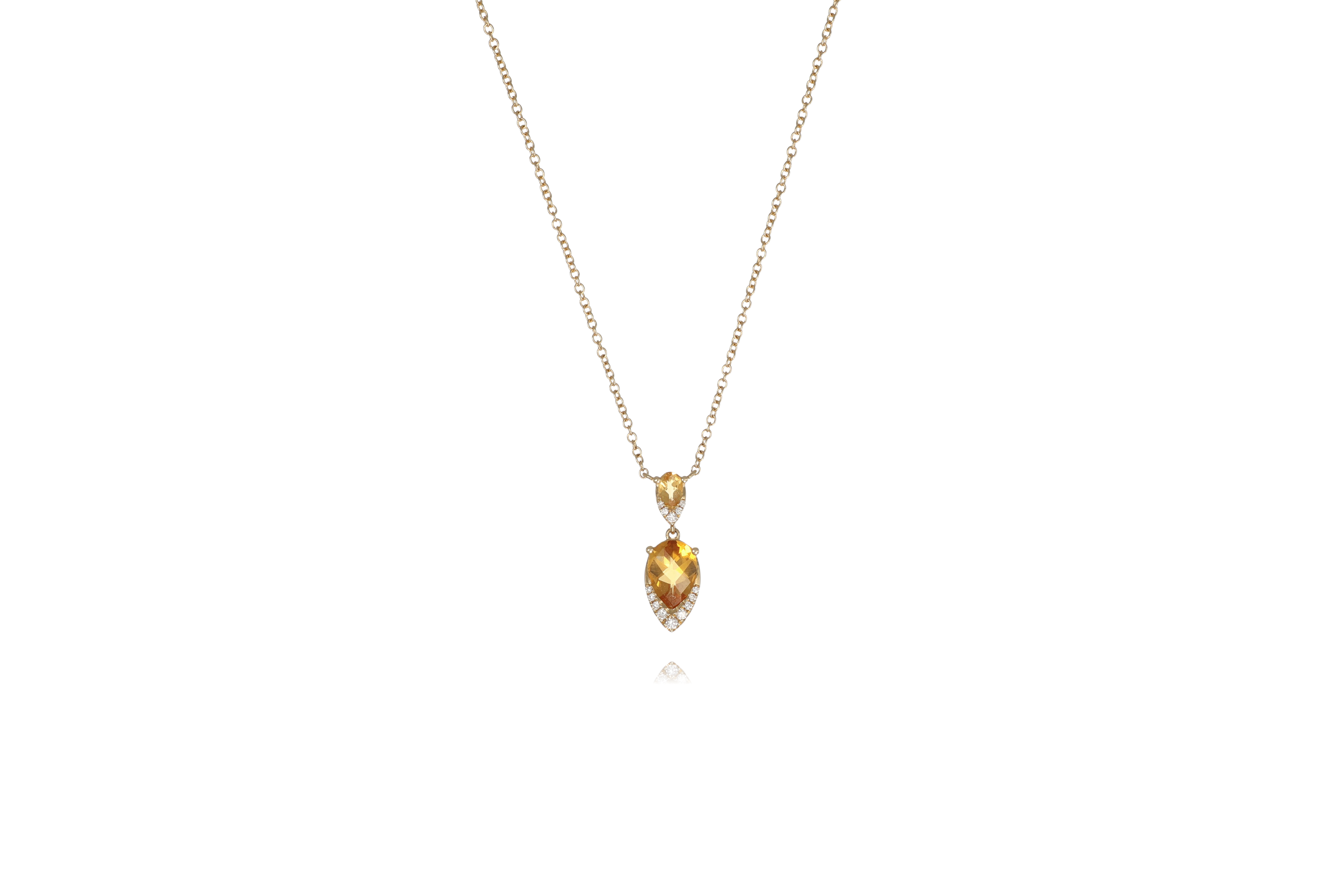 18ct Yellow Gold Citrine Diamond Pear Shape Duo Necklace 0.09ct