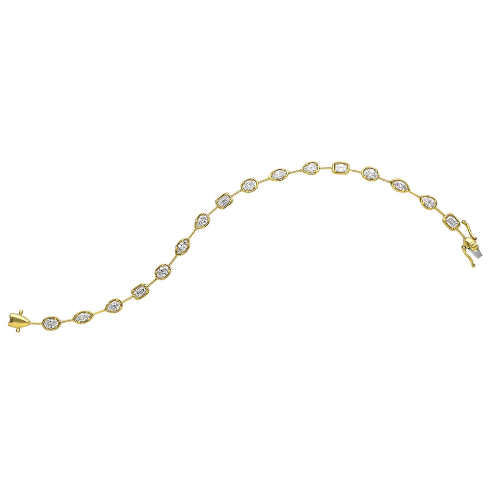 18ct Yellow Gold Diamond Mixed Shapes Line Bracelet 2.75ct