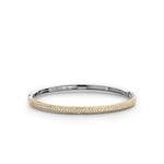 Made from sterling silver and plated with yellow gold and rhodium, the bangle is hinged to allow for a comfortable and secure fit. A concealed safety lock keeps her with you all the time.