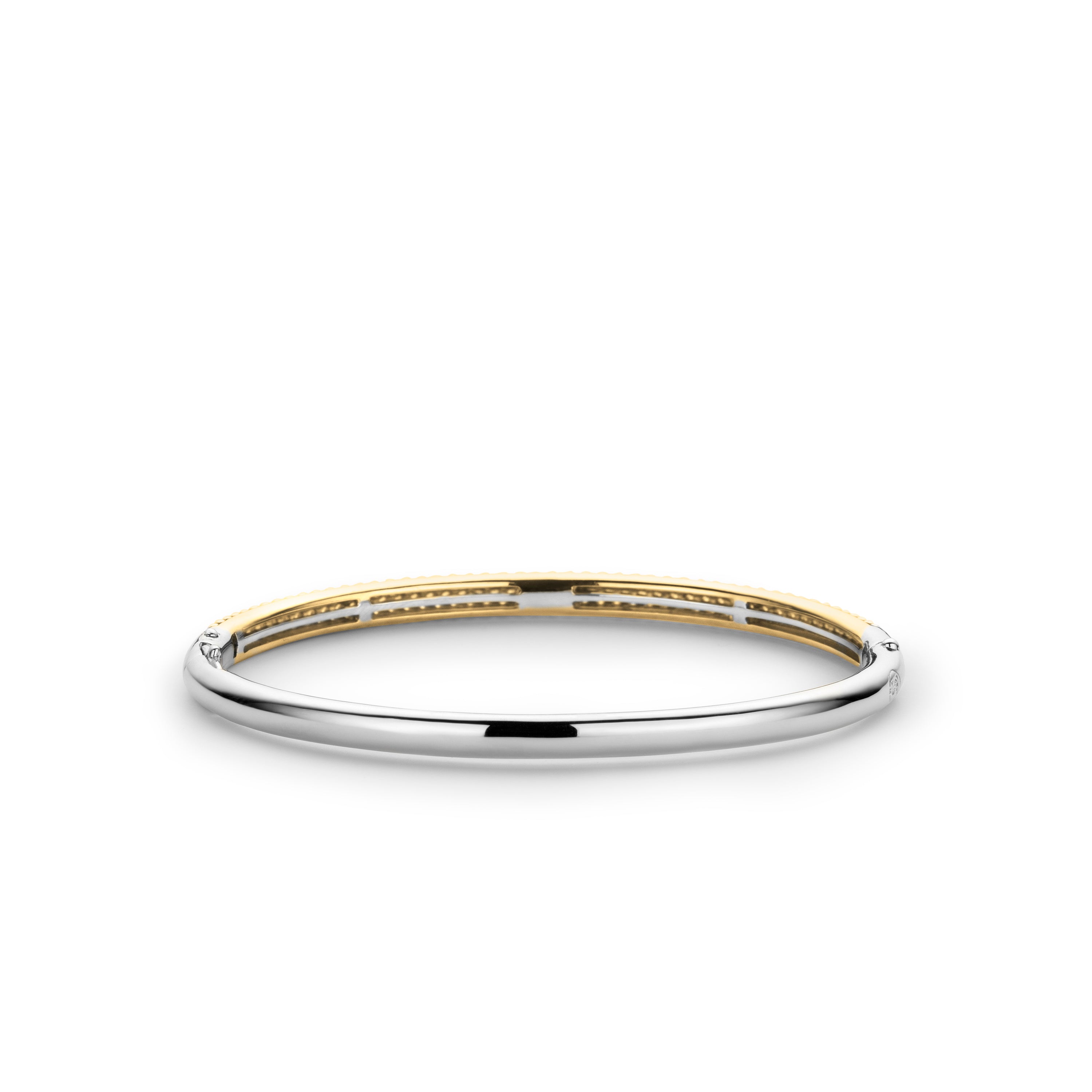 This beautiful Ti Sento bangle 2874ZY features a pavé of multi-row white cubic zirconia stones handset in a yellow gold-plated setting.