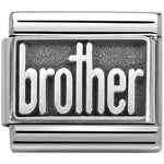 Composable Classic size charm in stainless steel with sterling silver oxidised detail Brother message.