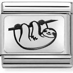 Composable Classic size charm in stainless steel with sterling silver Sloth symbol.