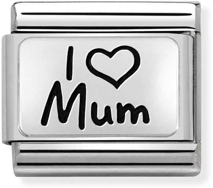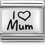 Composable Classic size charm in stainless steel with sterling silver I Love Mum message.