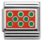 Composable Classic size charm in stainless steel with sterling silver orange & green enamel Dots symbol.