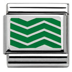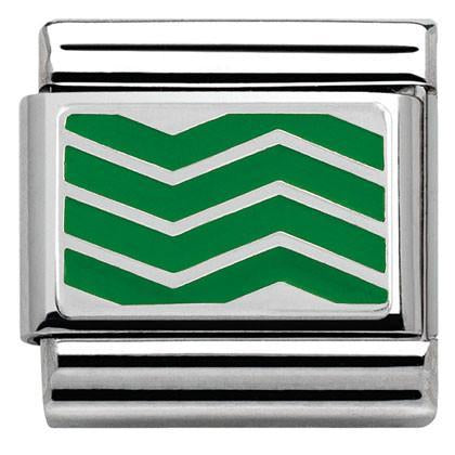 Composable Classic size charm in stainless steel with sterling silver green enamel Zig Zag symbol.