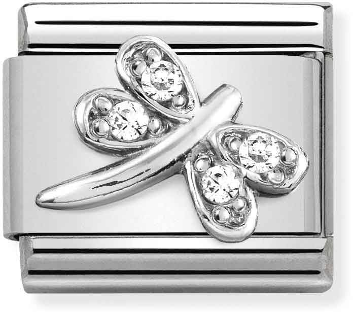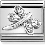 Composable Classic size charm in stainless steel with sterling silver white cubic zirconia Dragonfly symbol.