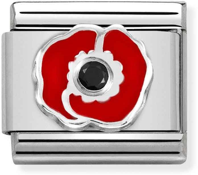 Nomination Classic Silver CZ Enamel Red Poppy Charm