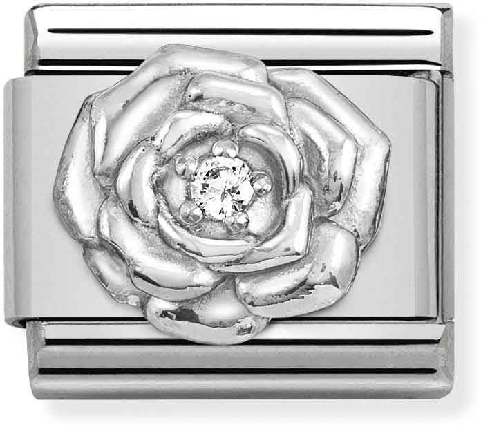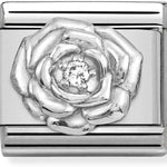 Composable Classic size charm in stainless steel with sterling silver white cubic zirconia Rose symbol.