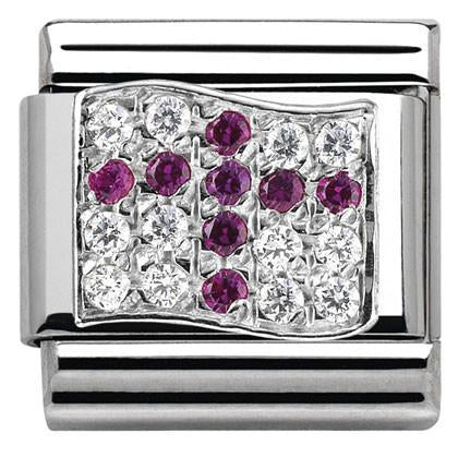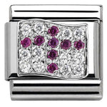 Composable Classic size charm in stainless steel with sterling silver cubic zirconia England Flag symbol.