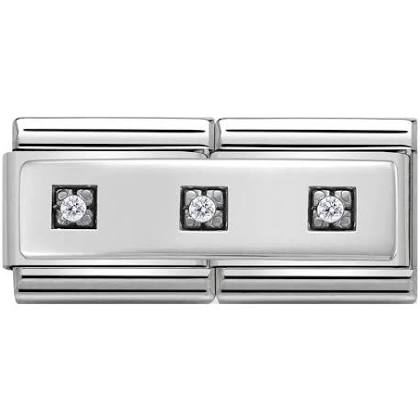 Composable Classic size charm in stainless steel with sterling silver cubic zirconia Double Studded symbol.