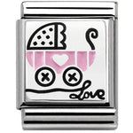 Composable Big size charm in stainless steel with sterling silver enamel Baby Pink Pram symbol.