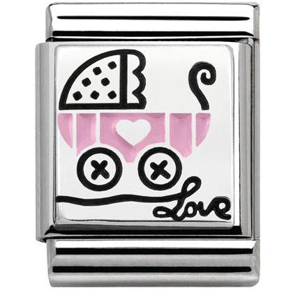 Nomination Big Size Silver Enamel Baby Pink Pram Charm SALE