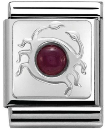 Nomination Composable Big size charm in stainless steel with sterling silver Cancer zodiac symbol set with Ruby.