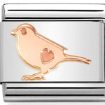 Composable Classic size charm in stainless steel with 9ct rose gold Bird with Heart symbol.
