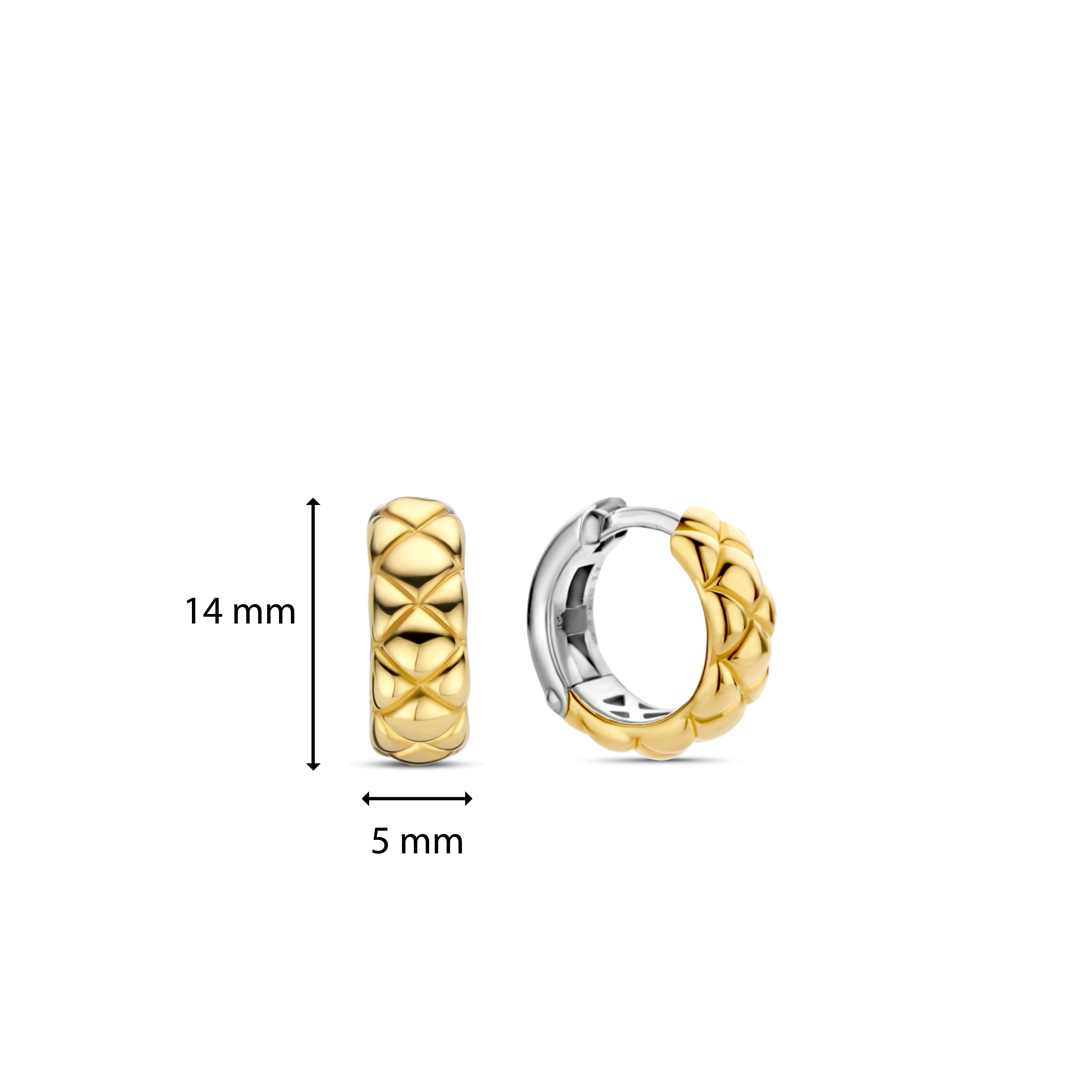These Ti Sento gold plated silver hinged hoop earrings 7911SY flaunt a playful quilted clover design inspired by the classic fashion motif.