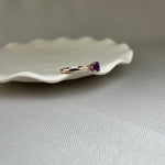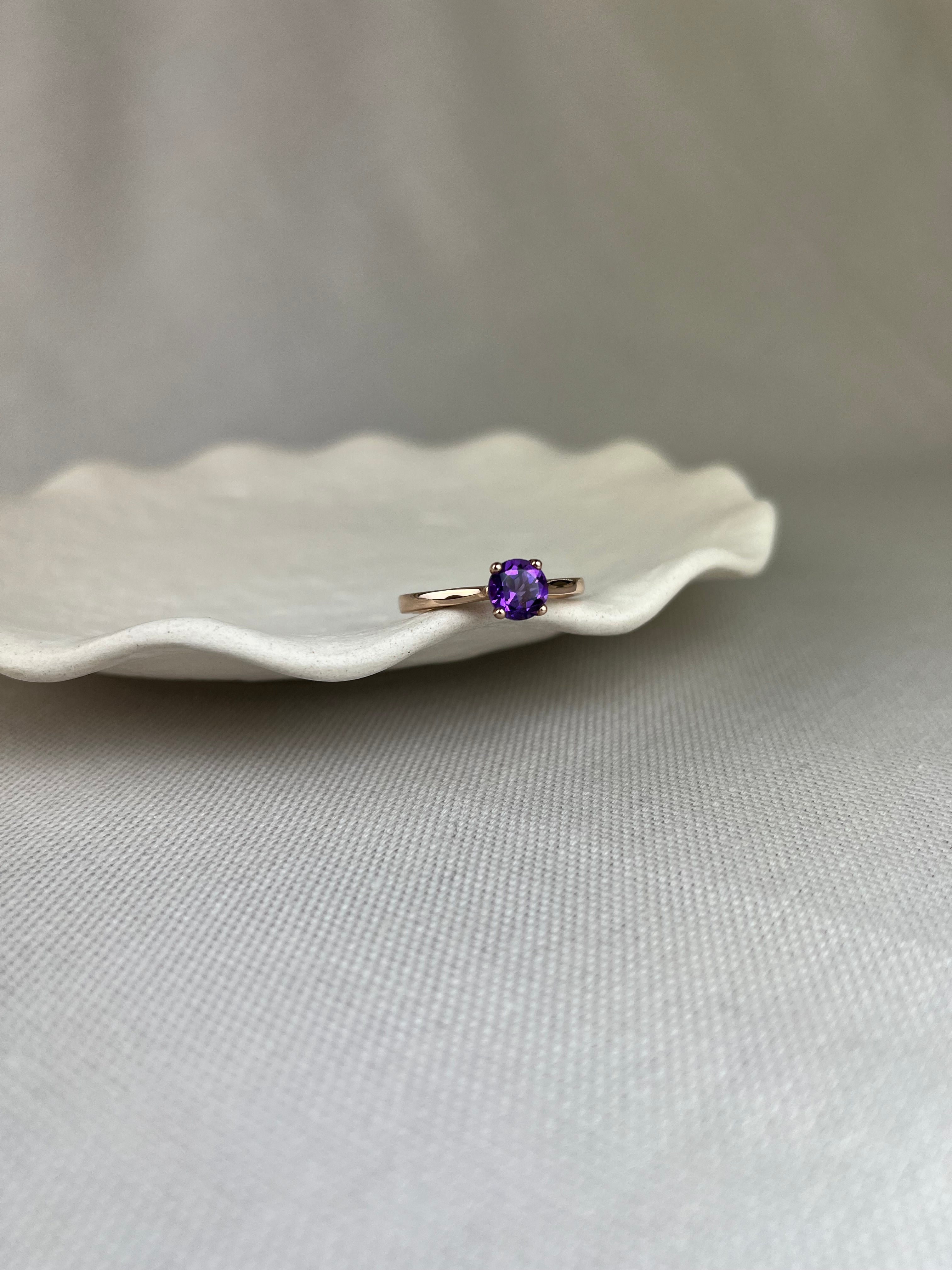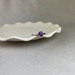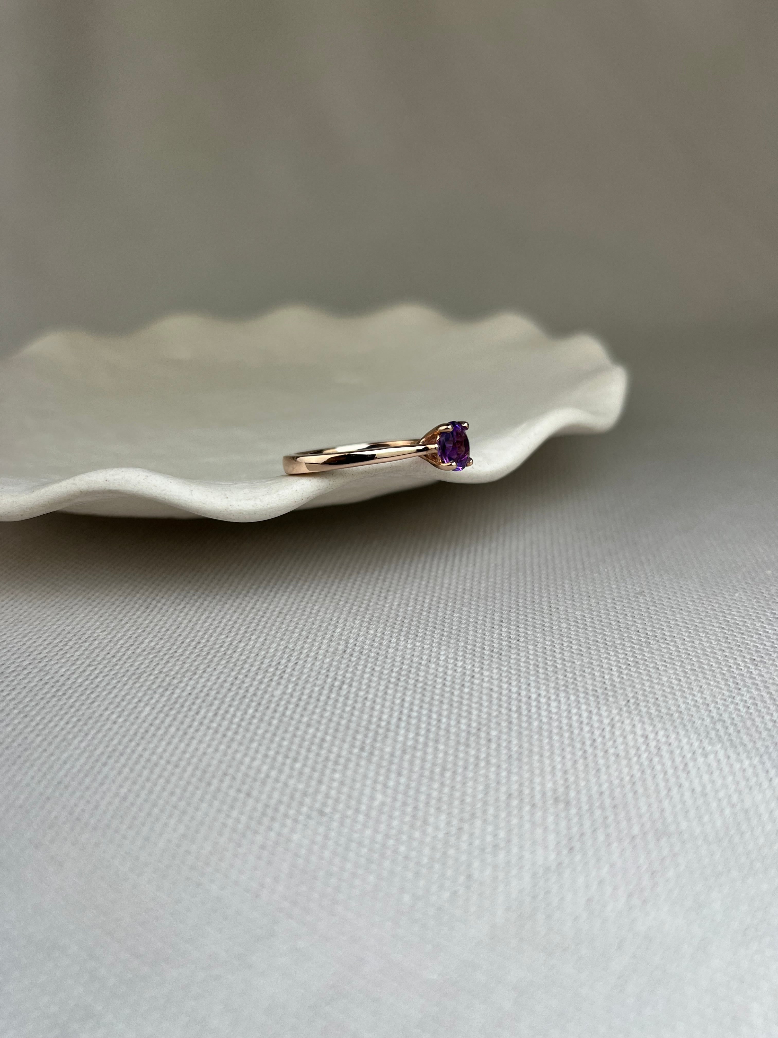 Nothing says classic like a solitaire ring, but this example mixes things up by combining the soft pink tone of 9ct rose gold with the rich purple of amethyst.