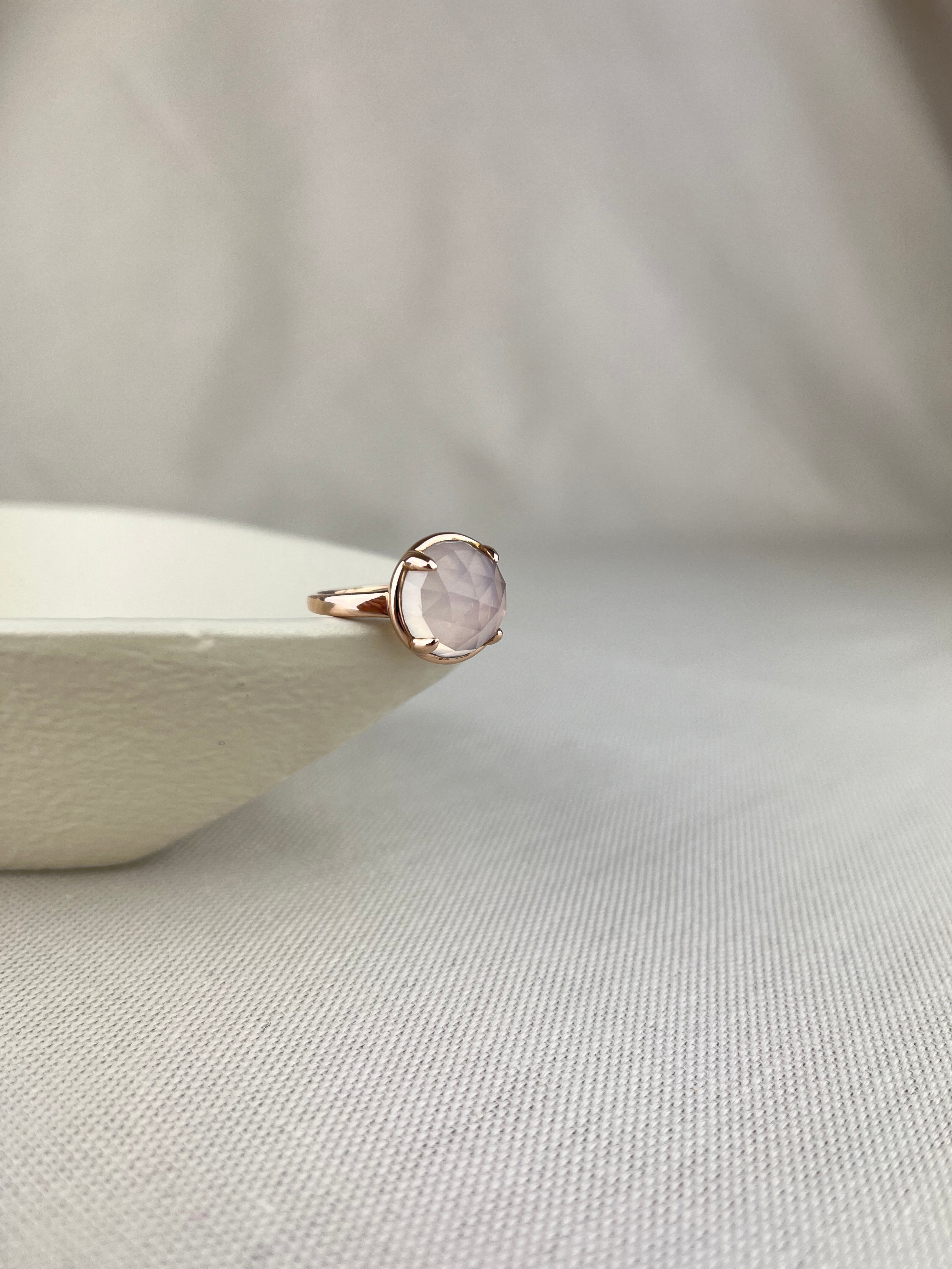 9ct Rose Gold Rose Quartz Statement Solitaire Ring