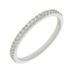 Created in 9ct white gold, the ring has a row of 24 sparkling round brilliant cut diamonds, set in scalloped edge settings which create a claw-like effect while minimising the elevation of the stones to create a very neat flush effect.
