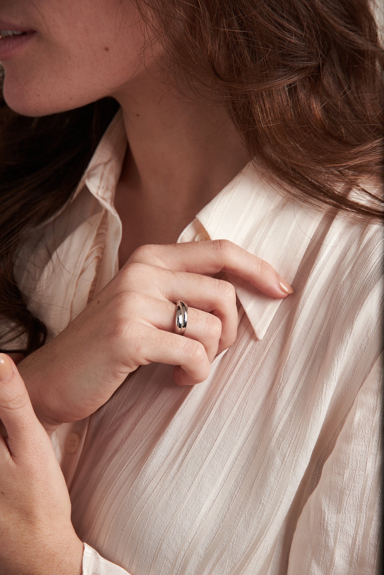 9ct white gold Russian twist design band ring, hand made from a pattern created by William & Julia Shaw.