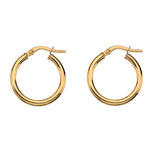 9ct Yellow Gold Round Profile Hoop Earrings 15mm