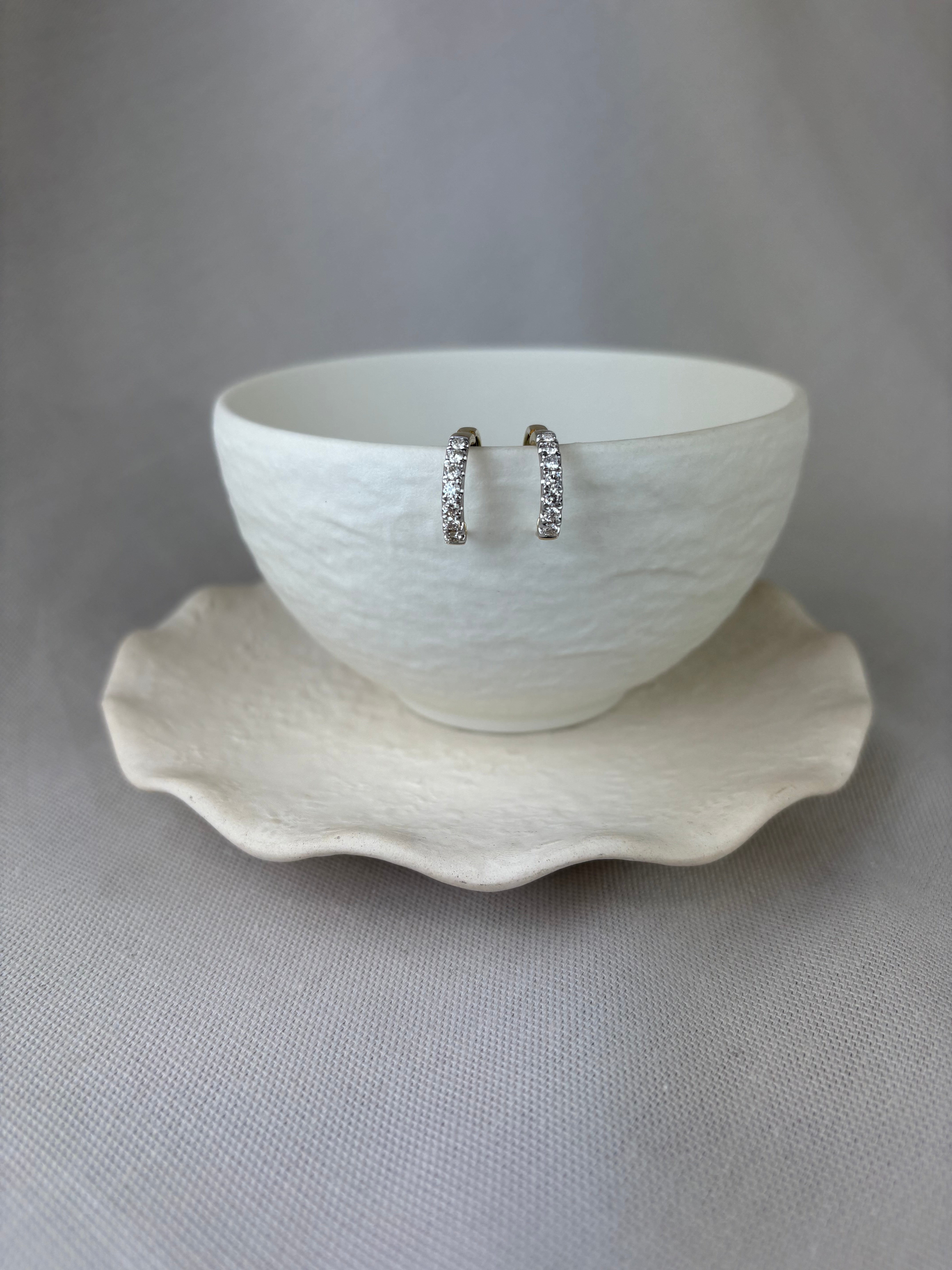 Huggie hoops are designed to fit tightly to the ear and this pair feature a claw set row of sparkling round brilliant cut diamonds for a luxe look.