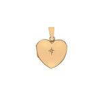 Seen here in 9ct yellow gold, this puffed heart shape locket is star set with a single sparkling round brilliant cut diamond and has a plain tapered pendant loop.