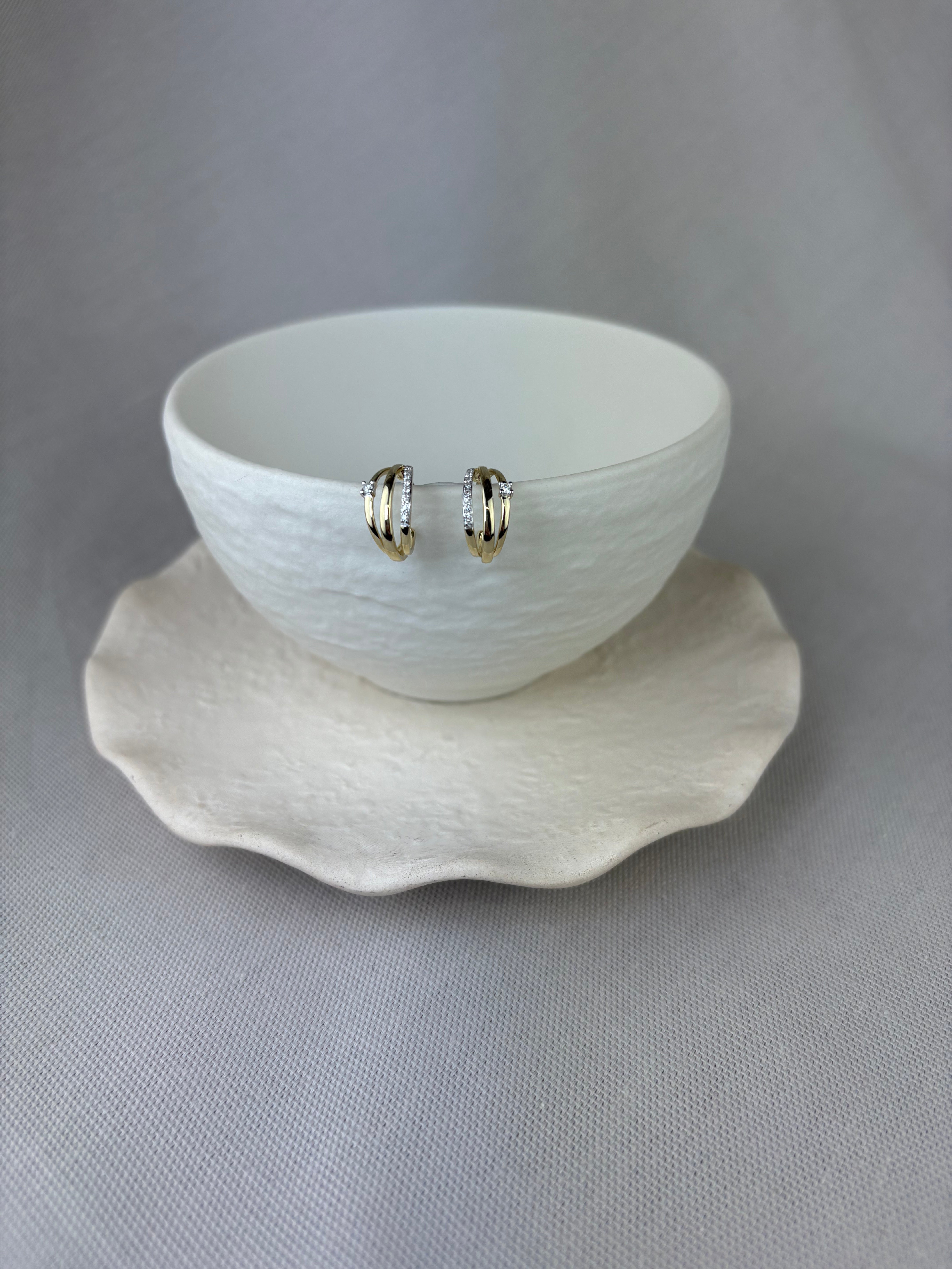 9ct Yellow Gold Diamond Three Strand Stud Hoop Earrings