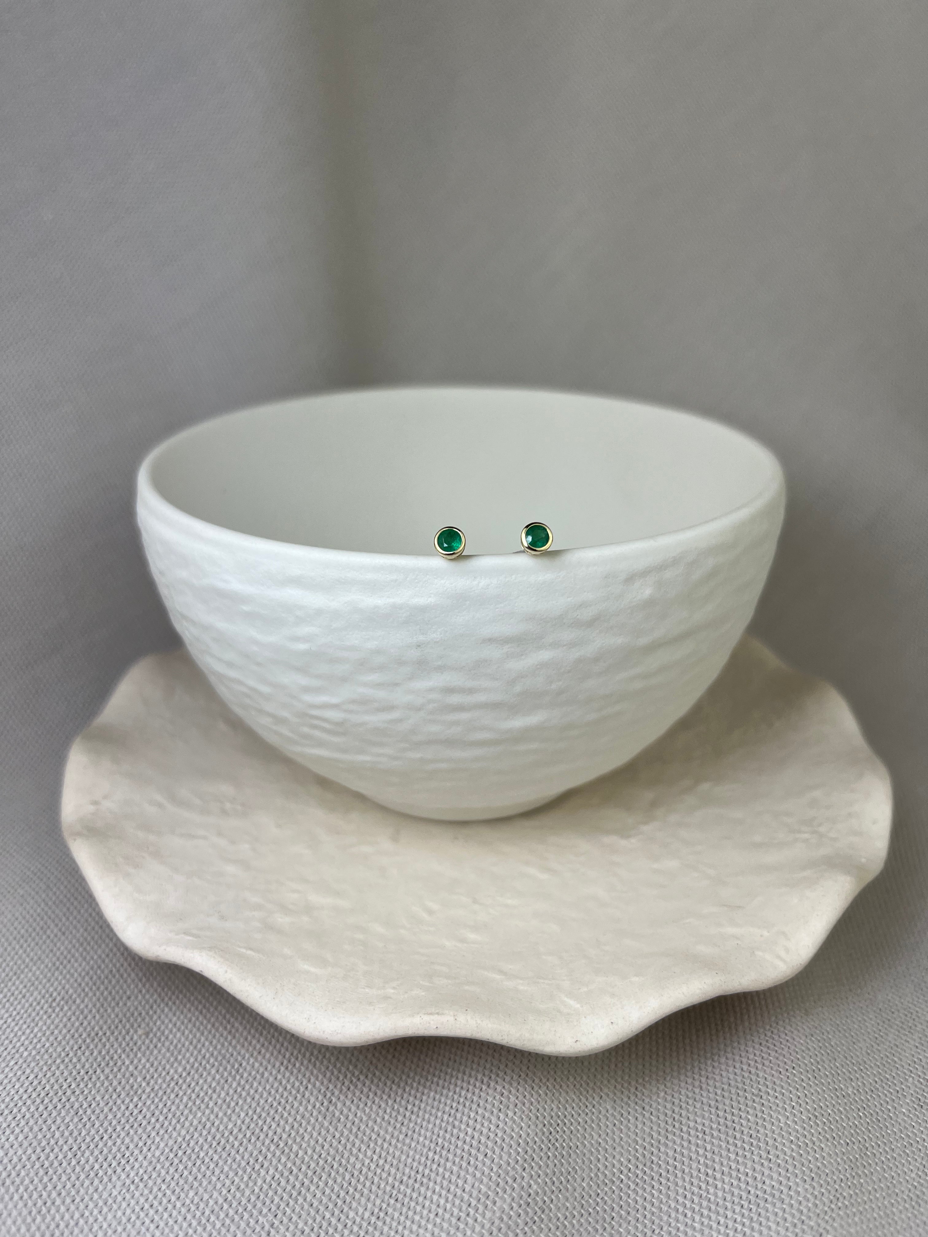 These petite solitaire emerald stud earrings are perfect for adding a pop of green to your outfit.