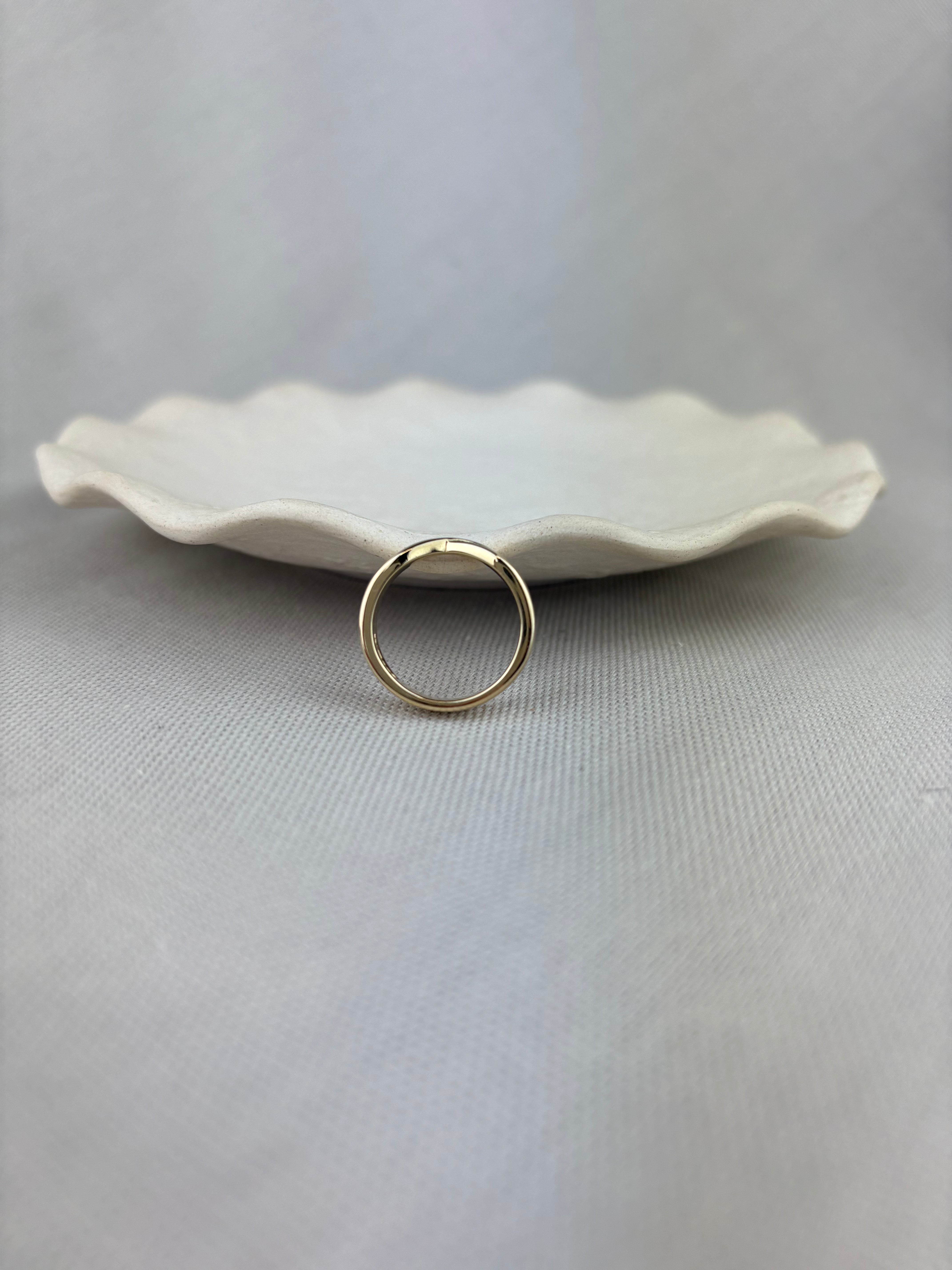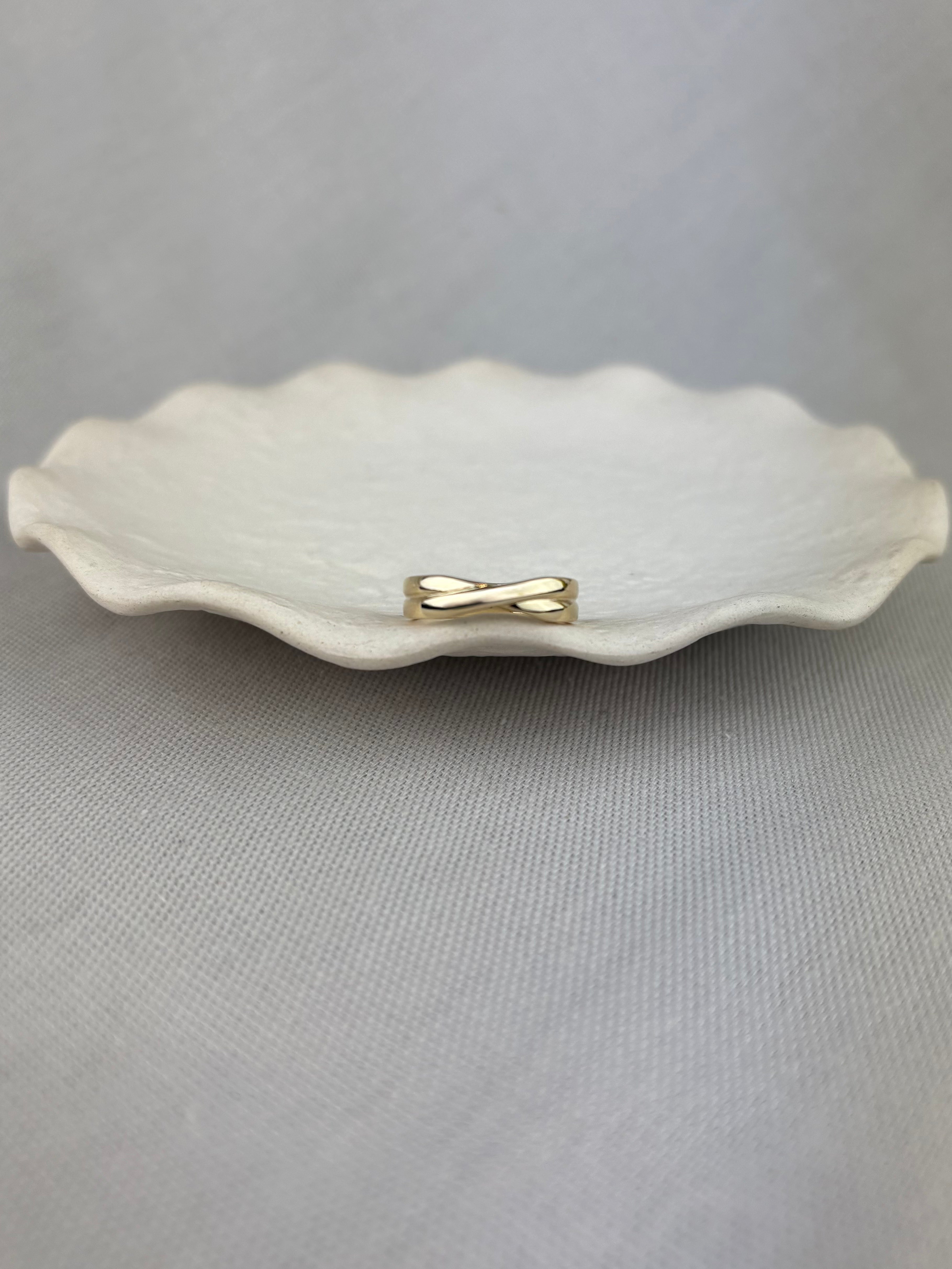 9ct yellow gold Crossover design band ring, hand made from a pattern created by William & Julia Shaw.