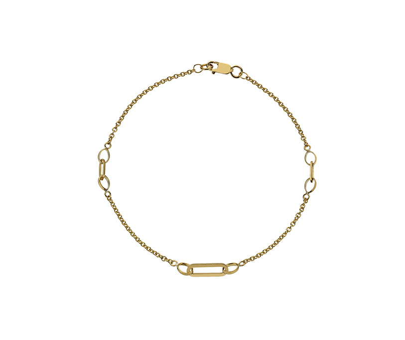 9ct Yellow Gold Paperclip Chain Link Station Bracelet
