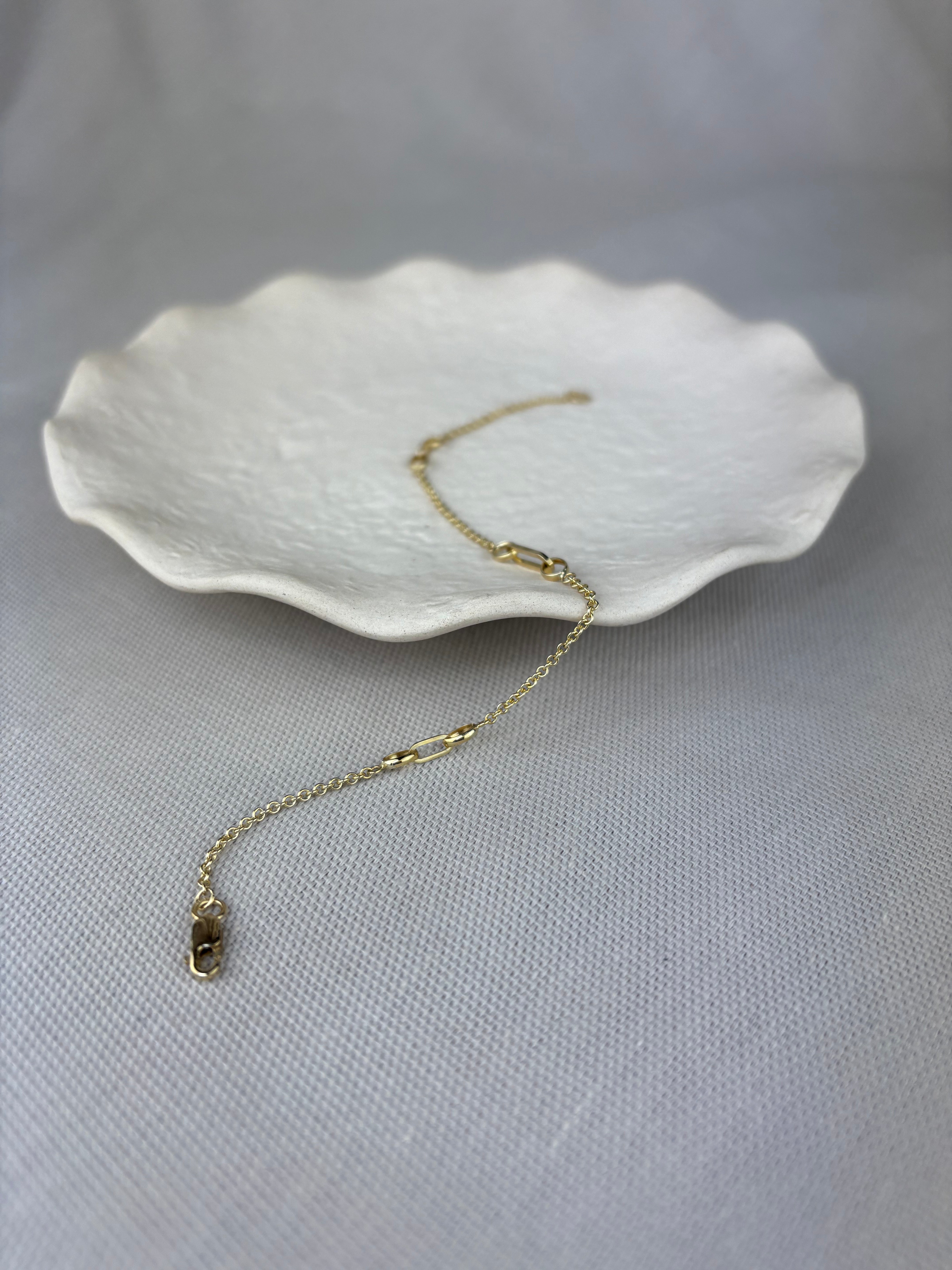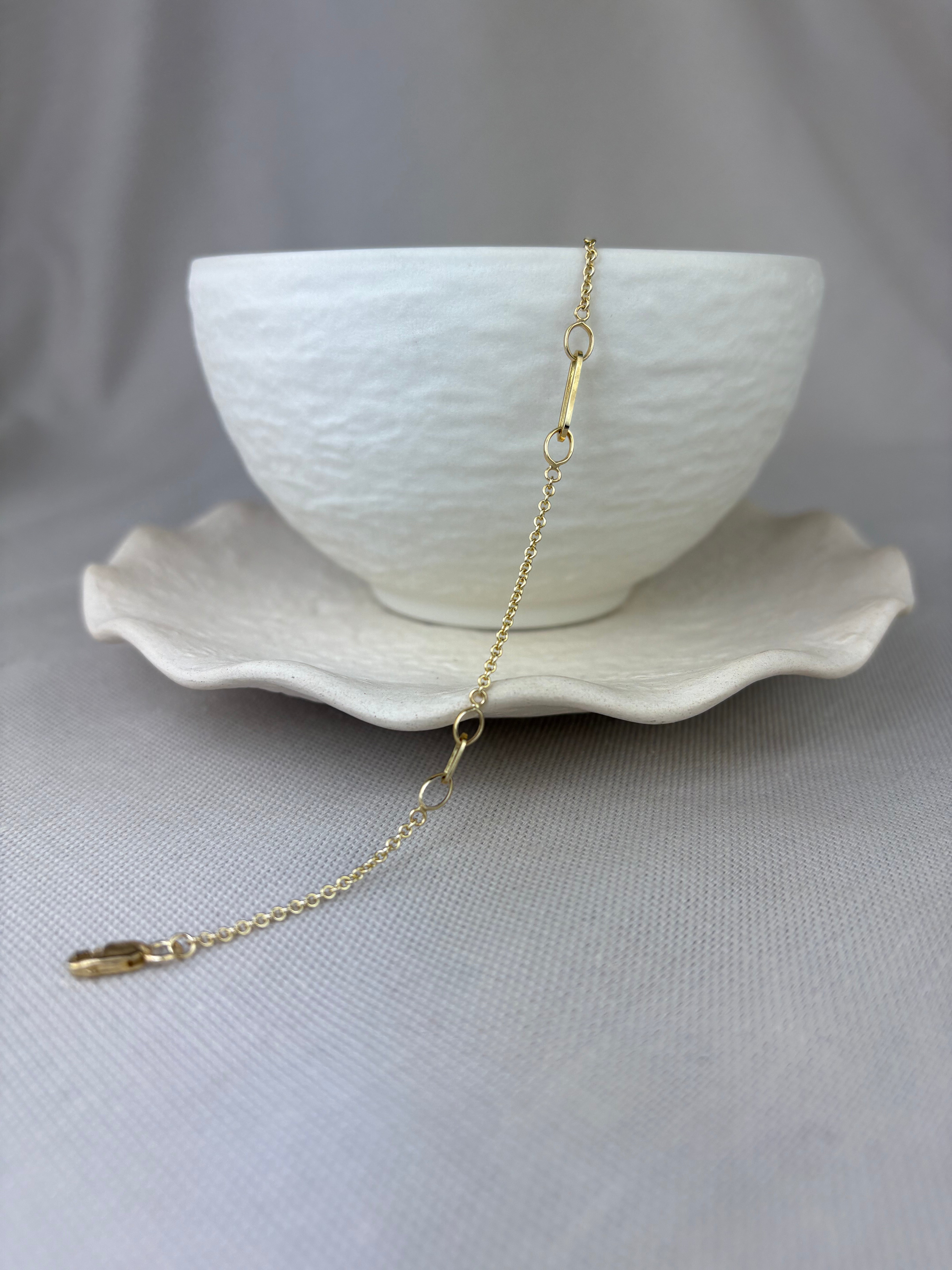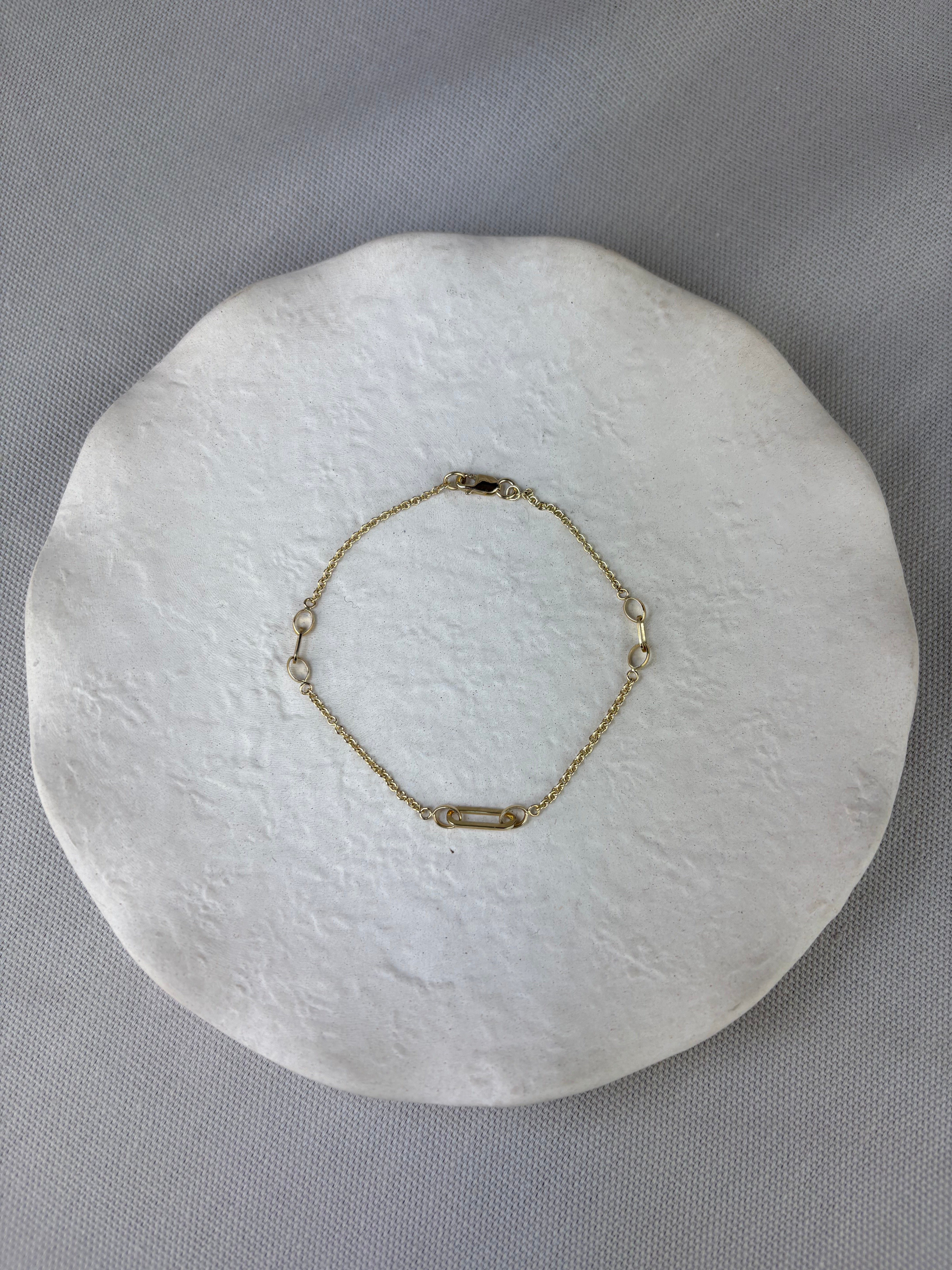 This solid gold petite paperclip chain link station bracelet makes the perfect addition to your jewellery collection.