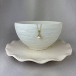 9ct Yellow Gold Pearl Diamond Wishbone Pendant 6mm