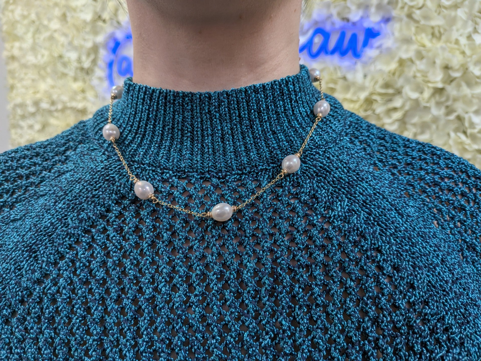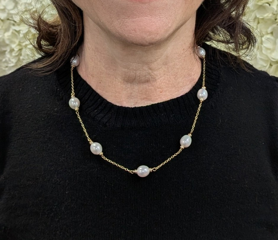9ct Yellow Gold River Pearl 'Mary Berry' Station Necklace 10-11mm